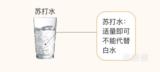 苏打水是碳酸氢钠水溶液,为弱碱性饮品,可以碱化体内环境、碱化尿液,促进尿酸溶解和排泄。