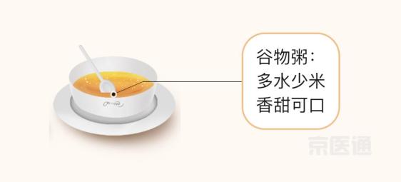 各种谷物的粥汤是不错的选择,比如稀的小米粥、燕麦粥、玉米碎粥。