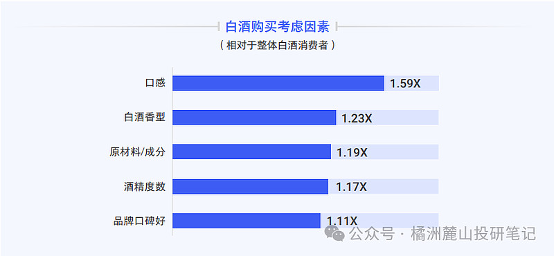 体现在选择白酒是需要兼具社交谈资、文化展现等等不同方面的属性。其中白酒的社交工具属性对他们来说是最重要的,利于烘托商务应酬时的气氛。其次白酒也是好的文化符号,以白酒为媒介,也可以传递这一人群自身的文化理念和品位。