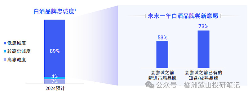 未来一年89%的消费者呈现对白酒品牌的较低忠诚度,都会同时购买多个白酒品牌,其中53%的消费者对新入局的品牌充满兴趣,希望尝试获得新奇体验。同时也有7成以上的消费者想能够尝试过往熟知但未买过的白酒品牌。