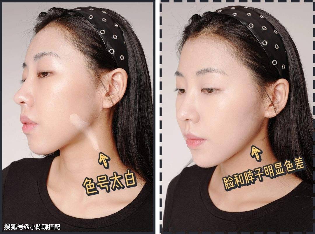 假设你是黄2白,那你就选择黄1白的粉底,一开始涂上去虽然会很假,脖子和脸对不上号,但不出半日,色调变暗,不就刚好黑成了黄2白吗?