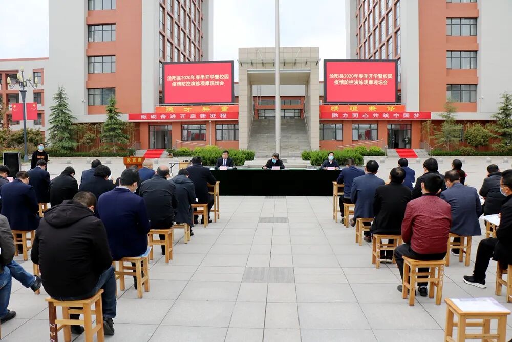 泾阳县认真贯彻中省市各级要求,全力做好校园春季开学及疫情防控工作,3月27日,2020年春季开学暨校园疫情防控演练现场会在泾阳中学举行县委常委、宣传部长张宣朝,县政府副县长贾小轩;县卫健局、县公安局、县市场监管局负责人;县教育局和县政府教育督导室班子成员,各高中、职专中层以上干部,各初中、中心校校长及分管副校长;局机关各股室、直属单位负责人参加现场会。