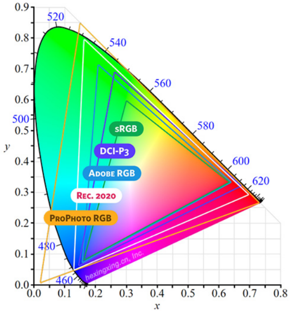 2.4.4色域即屏幕所能呈现的色彩范围,色域越广,呈现的颜色越丰富。