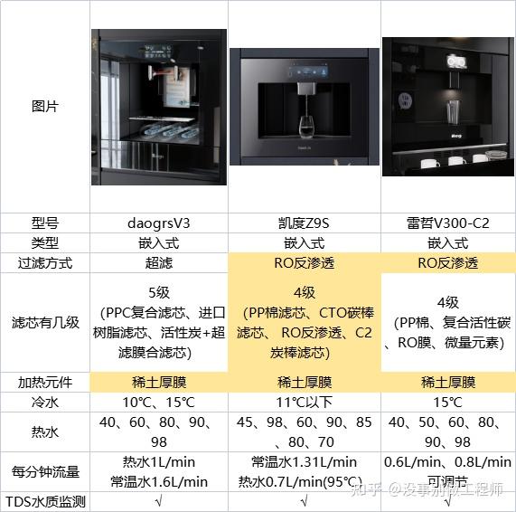 优点:有加热功能,不同温度的水可以直接饮用;台上式和嵌入式都有,满足各种场景需求。