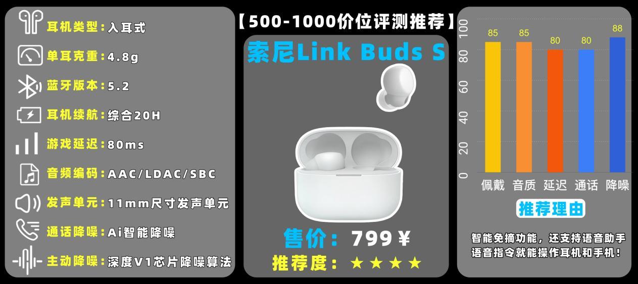 9、索尼Link Buds S蓝牙耳机售价:799¥
