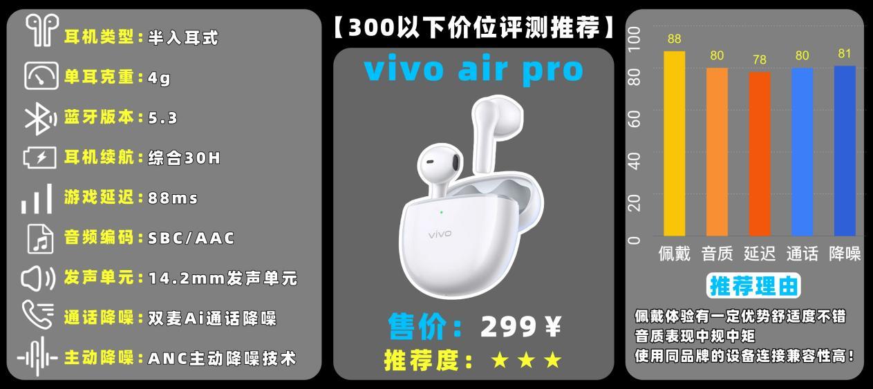 4.vivo Air Pro蓝牙耳机售价:299¥