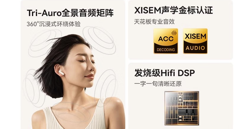 (2)音质听感评测:“作为音质性价比第一的品牌“的西圣A2Pro,音质方面搭载13mm高动态双声环聚能声音单元和Tri-Auro全景音频矩阵技术,赋予了A2出色的声场表现,声音更加饱满、紧实,低音更加浑厚,声场更加开阔,发烧级的HiFi DSP芯片加上金耳朵声学团队的专业调校,整体听感媲美专业千元级耳机,也赢得了专业测评师的高度评价,还实现了行业中专业天花板音效!