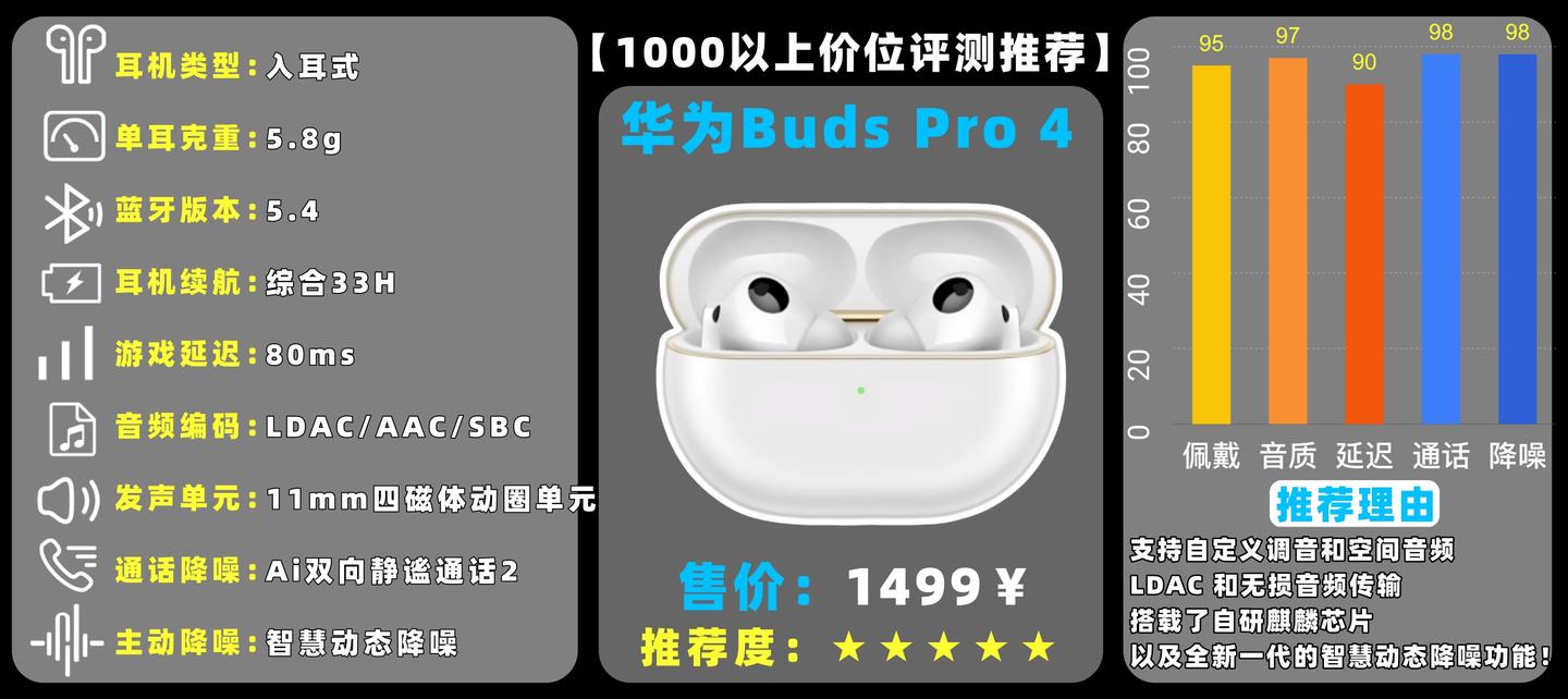 2、千元旗舰高端之选—华为Free Buds Pro 4蓝牙耳机售价:1449¥