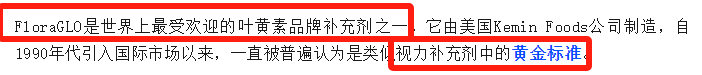 他家最难得的一点就是:有自己的叶黄素专利——FloraGLO。