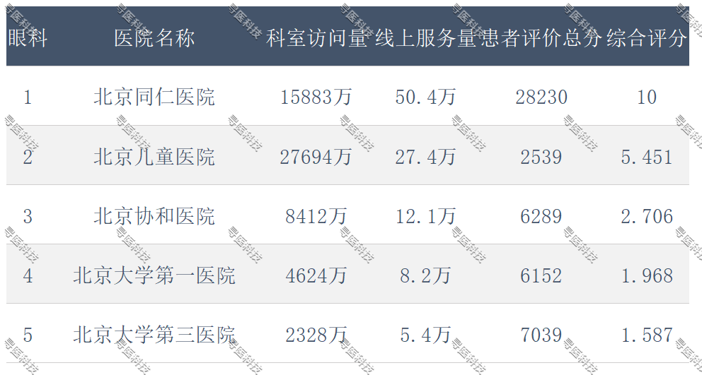 北京同仁医院都是第一名,也就是无论在专家同行眼中还是在患者眼中,同仁医院的眼科都是第一名