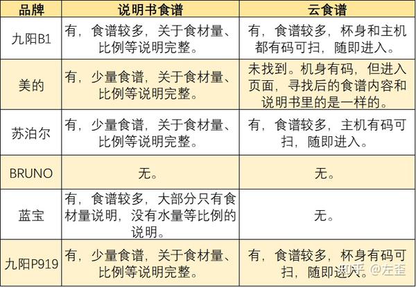因此我也试了一下每款破壁机获取食谱的方便度,并做了表格,给大家对比查看。