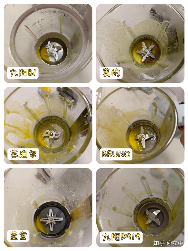 在搅打效果这方面,九阳真可以算是行业的老大哥了,不管是九阳B1,还是九阳P919,在搅打效果、不糊底、碎冰块方面的表现,都非常卓越,特别是九阳B1,在口感方面还粗细可调;美的的搅打效果也尚可;而其余的几款表现就比较一般了。