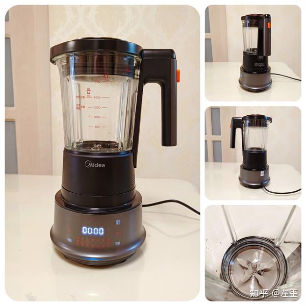 美的这款购入当天价格为1399元,和早先的一些破壁机相比,在造型上这款没有什么大的改变。主机会比其他机子小一些,颜色以黑色为主体,算是百搭色,外形上没有其他特别突出的设计。
