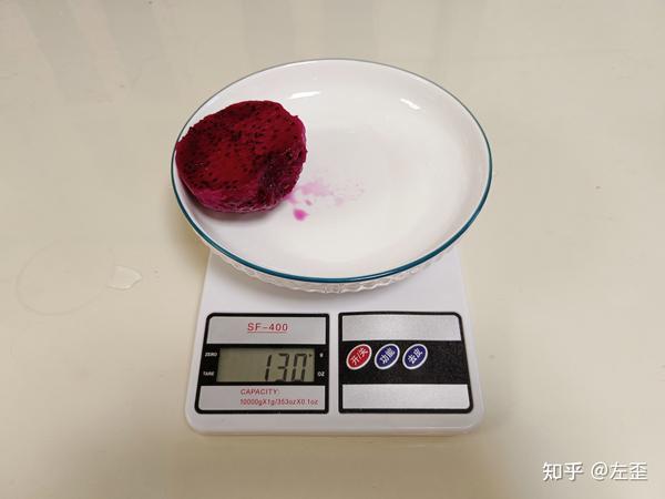 我把每份火龙果、冰块和水量也都做了统一,分别为130g火龙果(称重时已去除量杯、盘子重量),6颗4×2×2cm的冰块和300ml矿泉水。