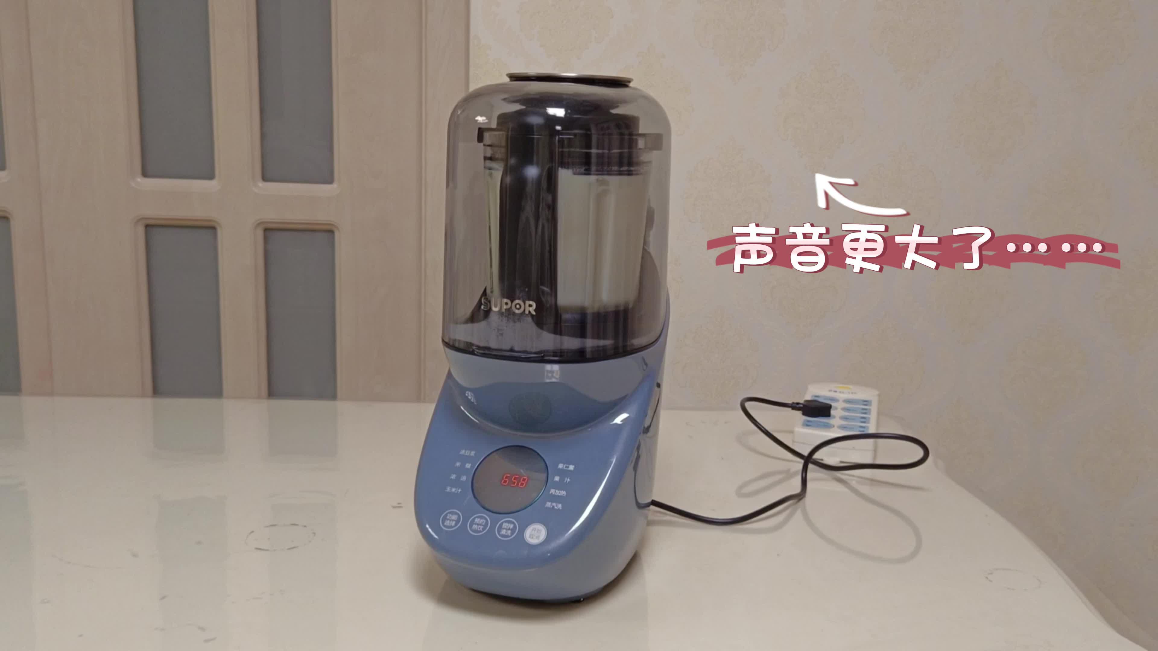 同样是先煮再打,前半段的声音能感觉到非常轻,到了剩下15分钟左右,搅打的声音大,带有震感,声音维持在75-78分贝间。放在客厅搅打,进房间关了门,还是明显能听到声音。