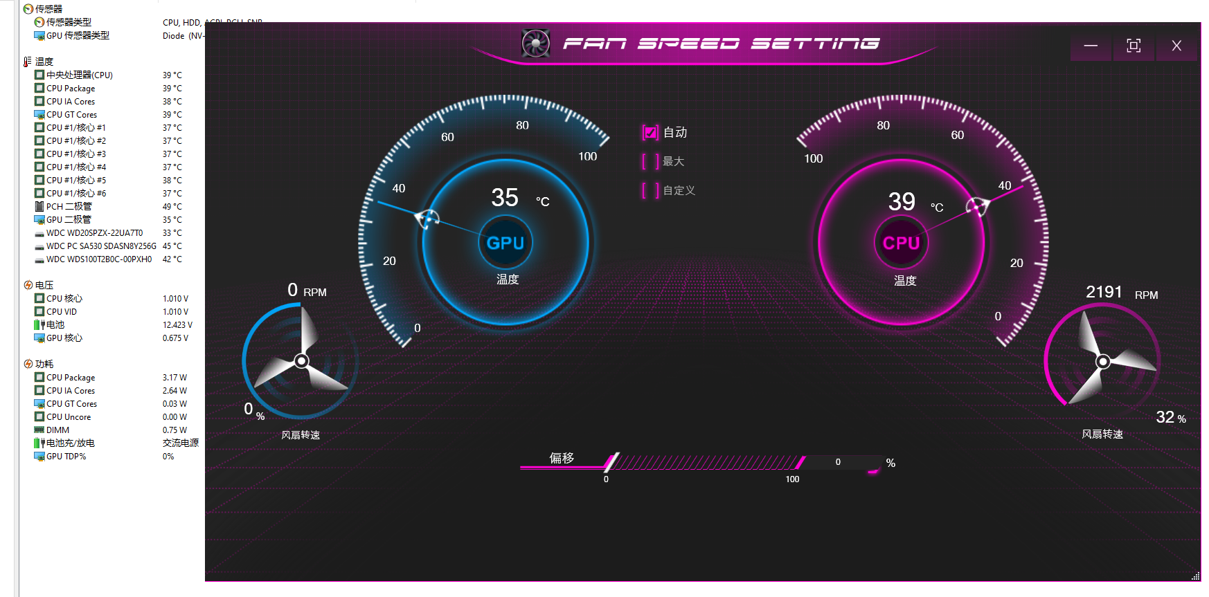 待机时仅2-3W 风扇转速也是32% 基本听不到风扇声音.而单烤CPU时也一直都是这个转速,所以说风扇都懒得动.
