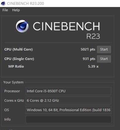 R23R23跑分:单核931 多核5021