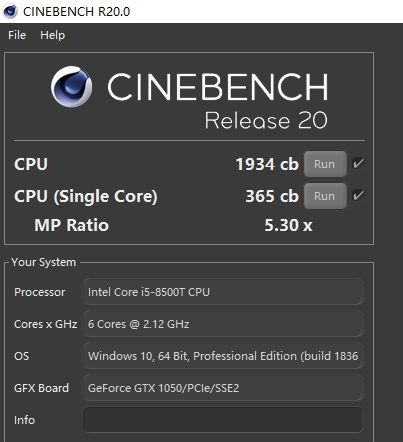 R20R20跑分:单核365 多核1934