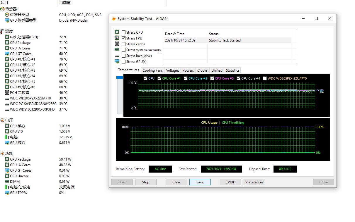 上图为冬天室温仅17度测试的,单烤FPU半小时温度保持在72-73度.