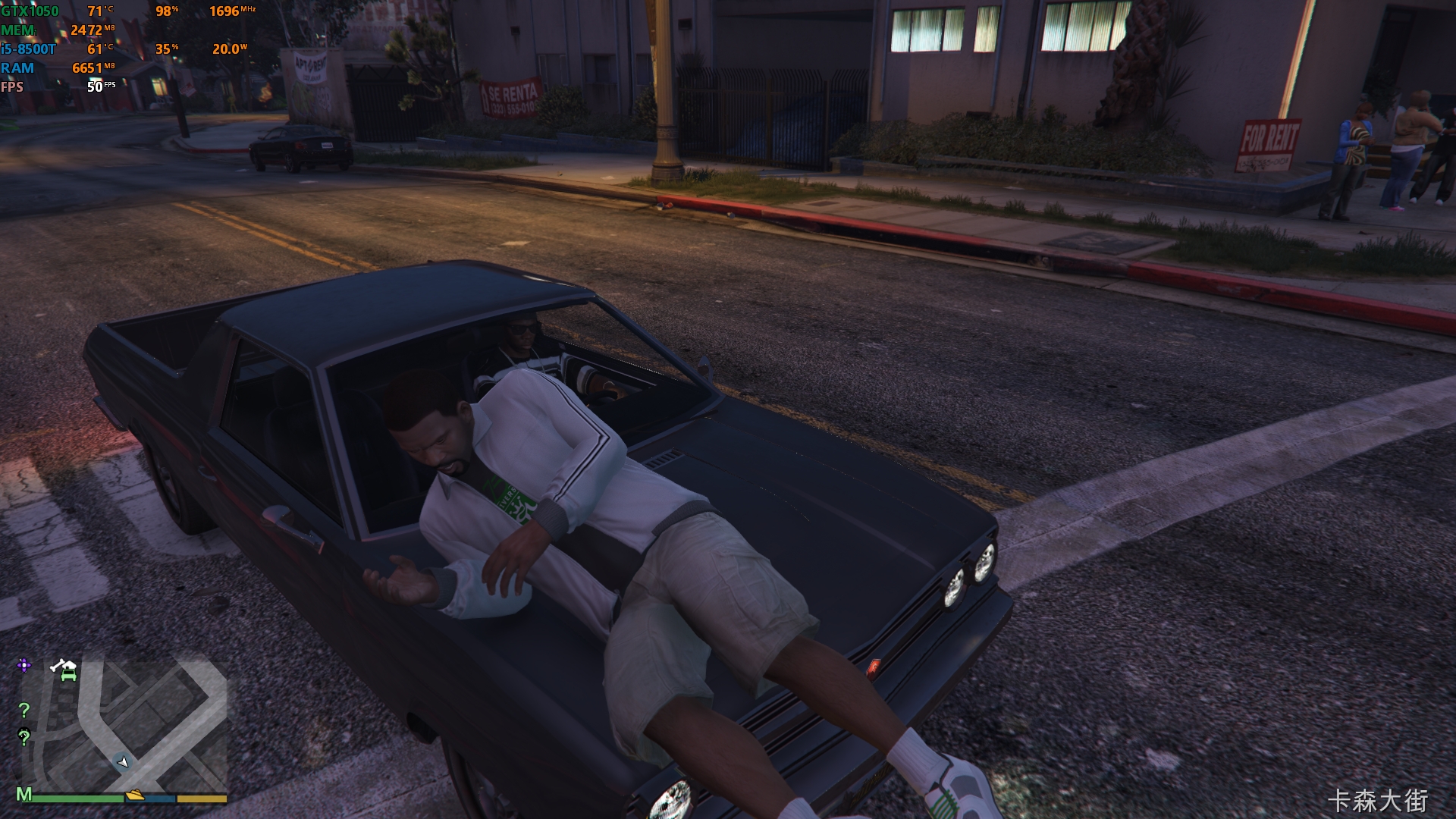 游戏 显卡为GTX1050 3G 使用微星小飞机监测实时数据(左上角)