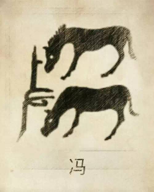 冯姓图腾,冯姓是牧马民族的族称,由两个马组成冯氏图腾,一匹马为雄马,一匹马为雌马。