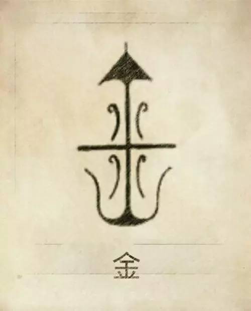 金姓图腾,金的本义为天余四方重、番仪。天俞两侧的“八”代表分判,其下为山,是立天俞的天齐。