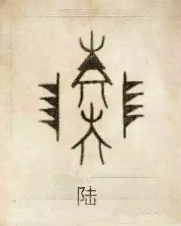 陆姓图腾,以危屋华盖重屋(中)和日月升降符号“非”组成(左右)。