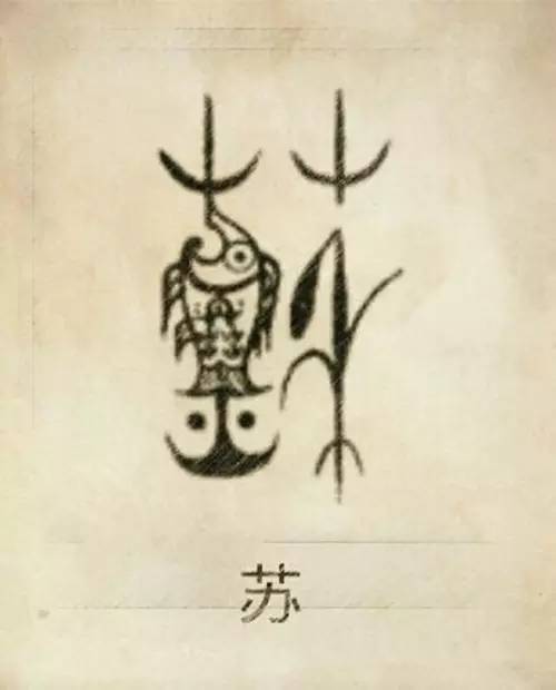 苏姓图腾,苏姓是炎帝族彤鱼氏族祢,祝融八姓之一,由禾、苗、鱼、火组成。