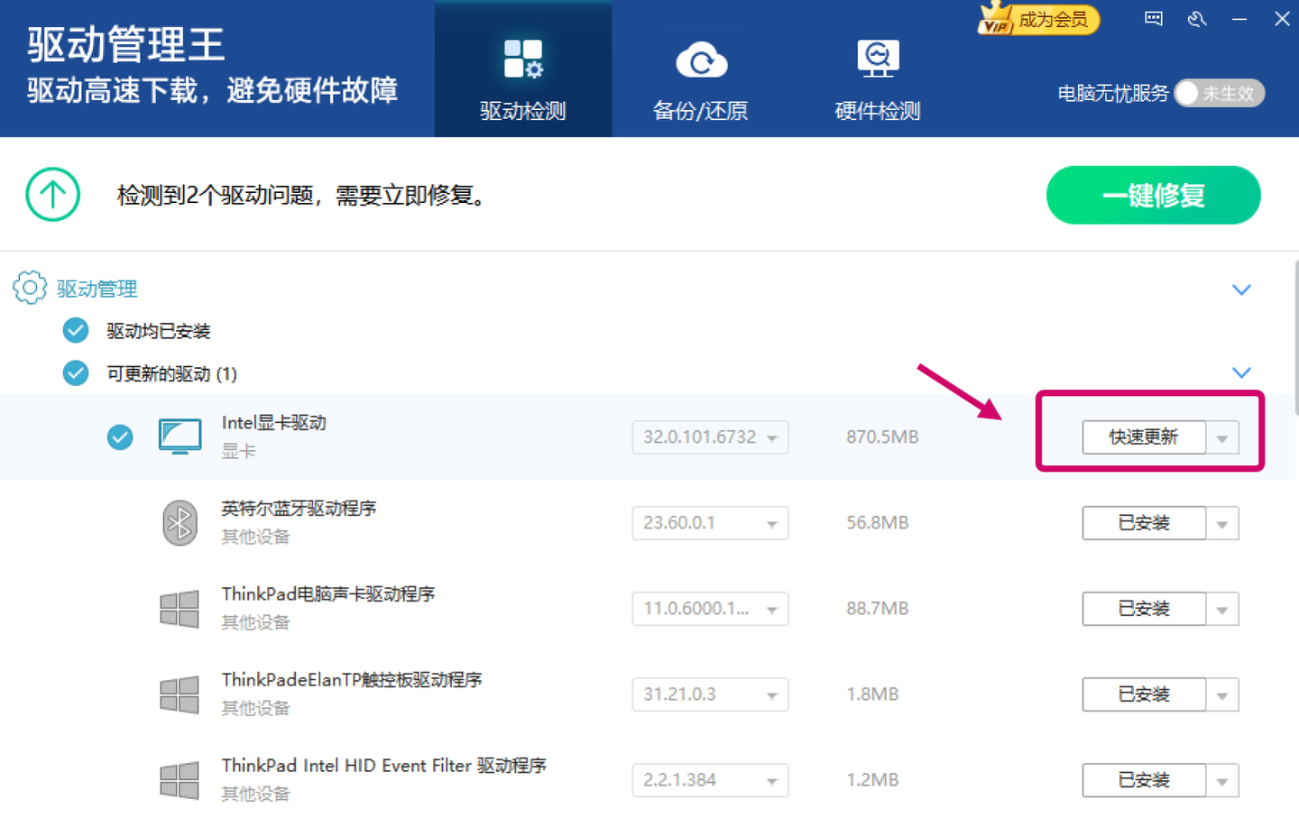 2. 它会自动扫描,发现显卡驱动有更新会提示