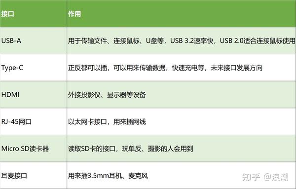 2.6 接口笔记本电脑接口主要是看接口种类和数量,种类关系到自己的接口需求,比如常见的USB-A、USB-A、HDMI、RJ45网口等。数量方面看自己会用到几个USB-A接口等等。