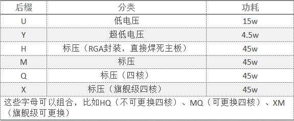 类别:后缀英文字母,同时区分笔记本标压和低压重要的指数