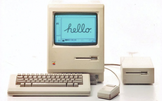 1984年1月24日,前苹果公司首席执行官史蒂夫·乔布斯在加利福尼亚州库比蒂诺举行的苹果公司年度股东大会上推出了第一台Macintosh,配备9英寸黑白显示屏,8MHz Motorola 68000处理器,128KB 内存和一个3.5英寸软盘驱动器,价格为2495美元。