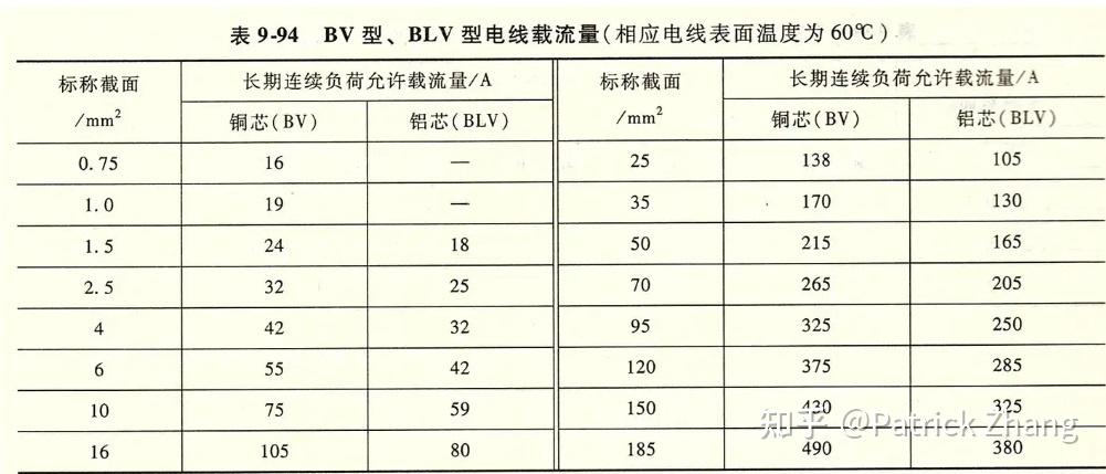 图4:配四中给出得电缆载流量表我们在图4左侧第二列中看到10mm²铜芯电缆BV的载流量是75A。