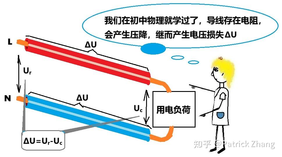 图1:电线电缆在传输电能时必定存在电压降,造成一定的电压损失ΔU在电气工程里,导线或者电缆的压降有专用术语,叫做电压损失,用ΔU表示。