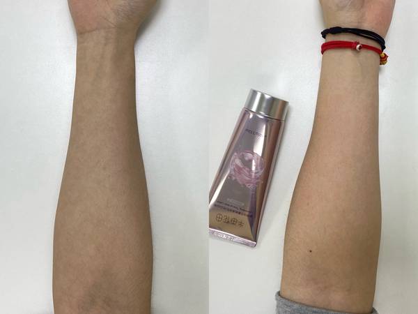 粉色乳液质地,带轻微闪片,美白效果微乎其微。严重掉色,不防蹭,很容易蹭到衣领,避免穿深色衣服使用。不防水,遇水流白汤。