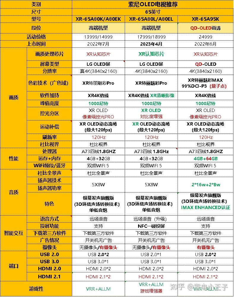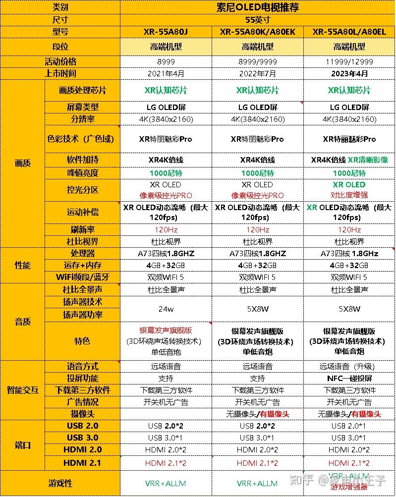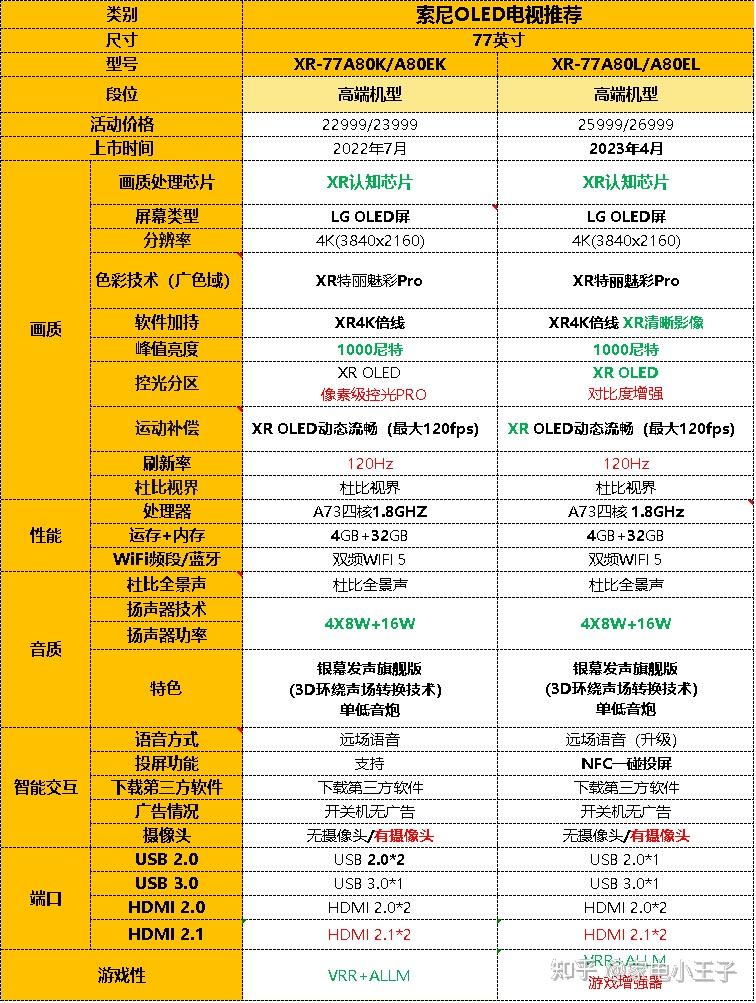 3、77英寸XR-77A80L/A80EL(23年OLED次旗舰) → XR-77A80K/A80EK(22年OLED次旗舰老款)