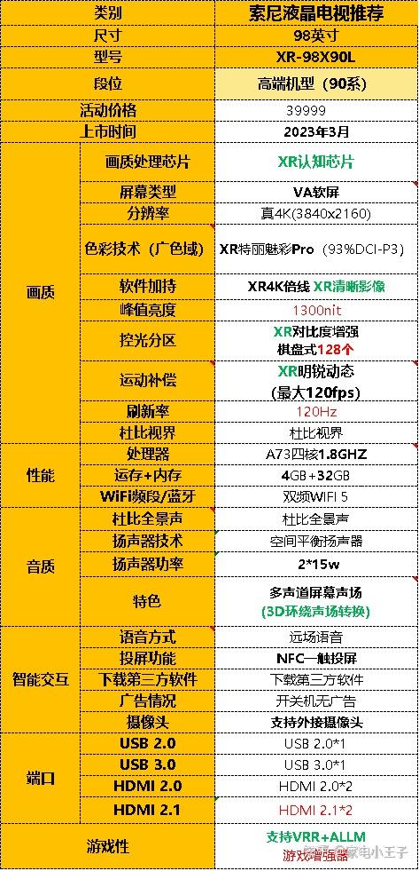 索尼首次出现98英寸巨幕大屏,而且搭载在了液晶次旗舰的X90系上。可见对百寸巨幕的重视,毕竟现在行业大家都在卷巨幕电视。