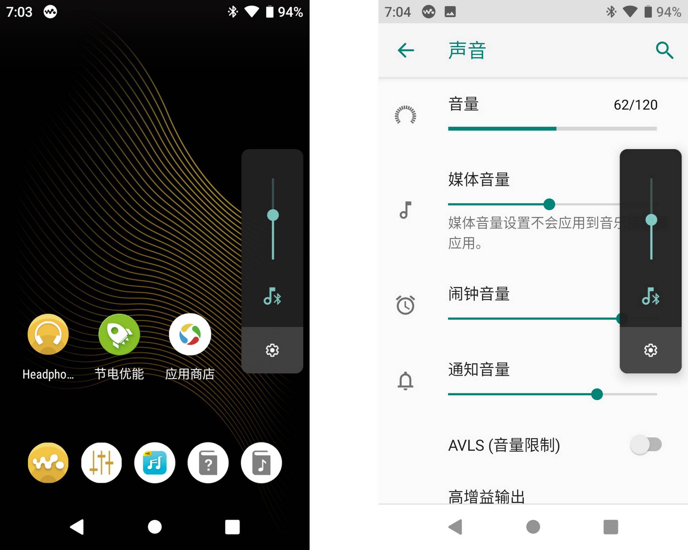 此外对于无线听歌的用户,新系统增加了蓝牙状态自定义音效,在使用蓝牙无线连接模式播放音乐时,可通过“均衡器”和“动态音量均衡器”来自定义喜欢的音效。有很大的实用意义,尤其对于偏科的蓝牙耳机来说,ZX505的自定义“均衡器”可做出一定的补救。同时对于听音偏科的用户,比如喜欢低频炸裂一些,只需要动动手指就能实现。