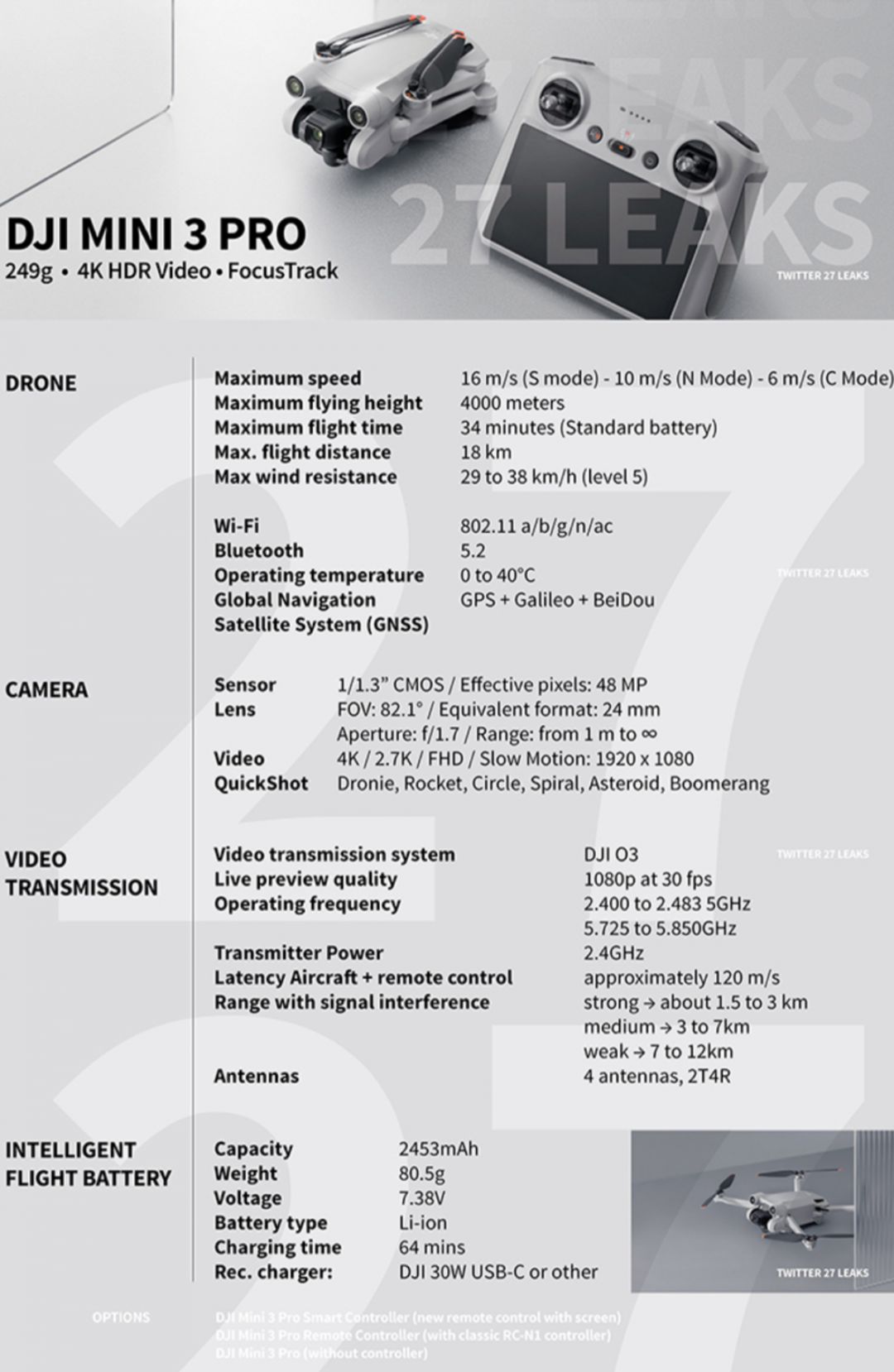 曝料的大疆Mini 3 Pro无人机版本及价格