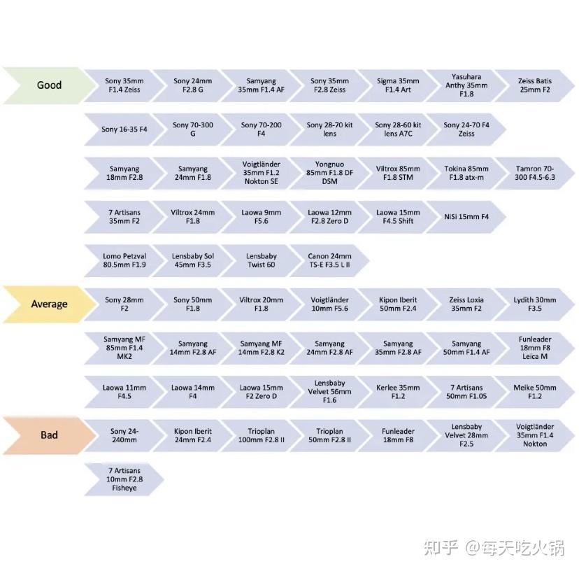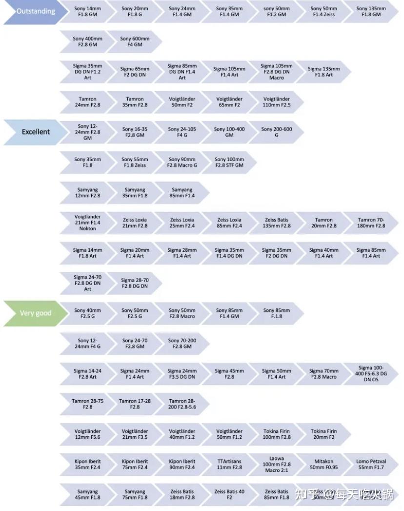 法国博主sonyalpha的索尼E卡口镜头推荐,整体上属于锐度为主的综合排名。