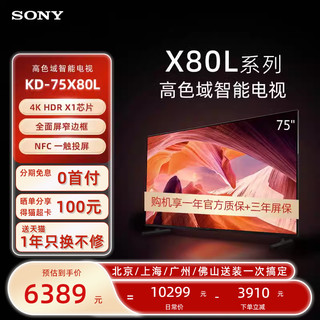 索尼 SONY KD-75X80L 75英寸 4K 智能网络液晶平板电视机家用客厅
