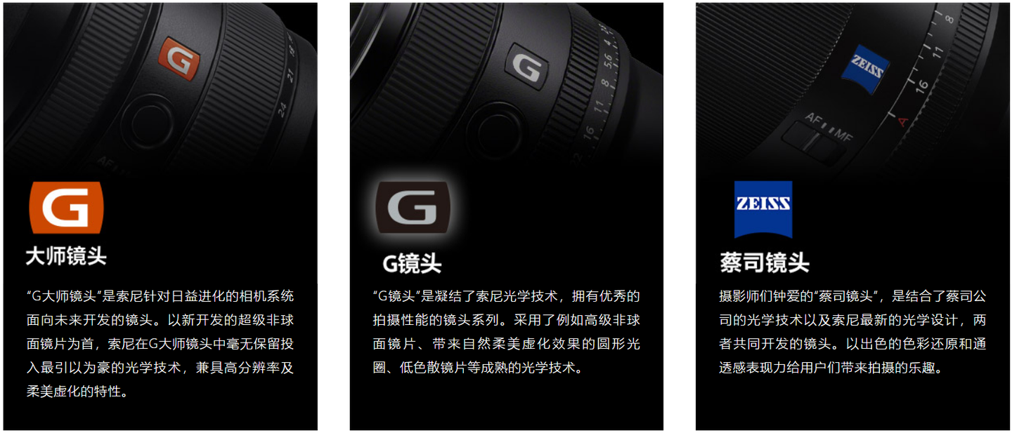 索尼原厂镜头中有三个高端系列:G大师系列、G系列和蔡司系列