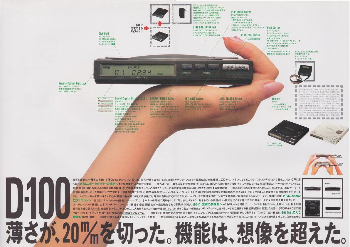 1984年,索尼以破釜沉舟之势推出了第一台便携CD机——D-50,49800日元的售价,成本却要近10万日元,足见索尼推广CD这一新的音频载体的决心。后面的故事我们也都知道了,索尼赢得了这场豪赌,CD成为往后20年中普及度最高的音频载体之一,44.1kHz/16bit格式的音乐成为音频行业很长一段时间内的标准。