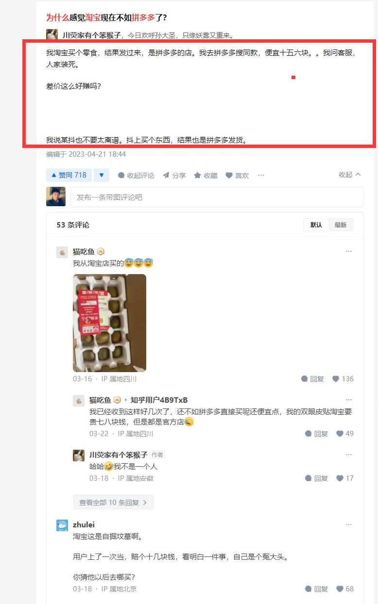 从网友评论来看,京东口碑不错,但关键的问题是京东还没有想明白为啥拼多多比京东便宜这么多。从京东员工的说法来看,京东现在的促销机制过于复杂、大促能动性较差,做不到拼多多的一口价低价。