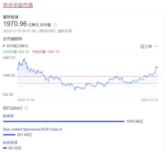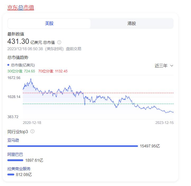 但京东百亿补贴打了将近三个季度了,效果并不明显,京东的低价心智始终没有建立起来,而资本市场也直接给了反应,从最新市值来看看,市值差距高达4.5倍(目前京东市值为431亿美元,拼多多为1970亿美元)——