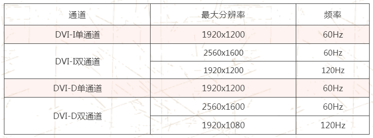 各类DVI接口图鉴以下是它们支持的最大分辨率与频率: