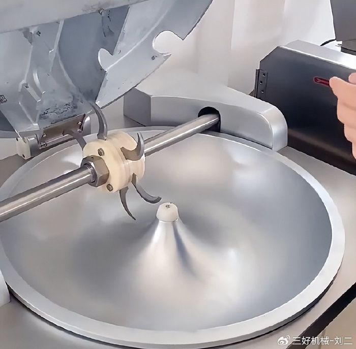 在使用三好斩拌机加工过程中,操作方式也简单粗暴,只需把肉丢进设备里,六把刀和盆地形成联动剁肉,这样在剁的过程中,不单可以掌控肉质颗粒的大与小,在加工成包子或饺子以后,食客可以清晰的看到肉质的本质,嚼在嘴里也可以感受到肉应有的味道。