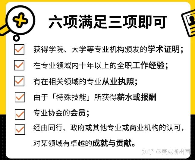 没有行业、语言、年龄等限制不需要找雇主或投钱到美国去比如大学教授、科学家、医生、舞蹈家、漫画家、演员、教练,甚至是手工艺人等都可申请目前排期预估在4-6年申请成功的核心,要向美国移民局证明你是他们不可多得的人才。需要从下图中的六项中,有一定力度的奖项、专利、研究成果等来做支撑,移民官有非常大的自主权利,所以得拿出实打实的东西才能让他们信服。