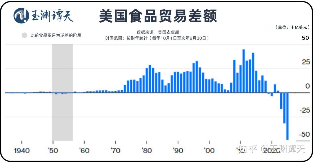 根据美国农业部的预测,今年美国将连续第三个财年出现食品贸易逆差,这还是过去70年来首次,进口额将超过出口额近500亿美元。