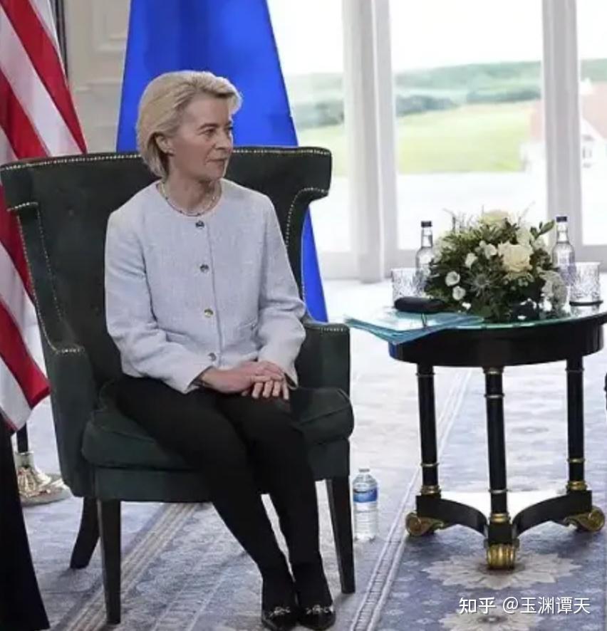 03 不公平的政治枷锁几天前,美国同欧盟达成贸易协议。与美国宣称达成史上最大的贸易协议形成反差的,是冯德莱恩双手放膝的坐姿和紧抿的嘴唇。